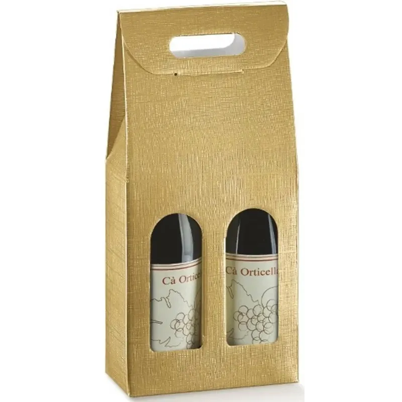 Tato laminovaná kartonová krabice o tloušťce větší než 2 mm, která je ideální pro bary, vinotéky a podniky, které chtějí stylově prezentovat víno, pojme dvě standardní lahve svisle. Dorazí naplocho, sestaví se během několika sekund a uzavře se pomocí robustních vnitřních klop, bez lepidla nebo pásky. Přední okno chrání sklo, ale umožňuje viditelnost štítků, zatímco matný povrch je nabízen ve vínové, zelené, modré, černé, zlaté a havanské barvě, aby ladil s každou produktovou řadou nebo dárkovou sezónou. Je lehký, rychle sestavitelný a plně recyklovatelný, takže dodává profesionální nádech prodeji v obchodech, donáškám jídla s sebou a vánočním dárkům.