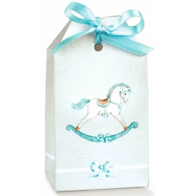 Sáčky na slazené mandle jsou praktickým řešením pro rychlé a snadné balení slazených mandlí a sladkostí. Potisk houpacího poníka vám umožní vytvořit rychlé, praktické a elegantní dárky pro oslavu křtu, narození nebo odhalení pohlaví.