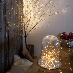 Odbočka dostupná v bílé nebo hnědé variantě Micro BRANCH H180cm 576 MicroLED CLASSIC Ø1.5mm, stříbrný kovový kabel nebo měděný kovový kabel, pevné světlo, tvarovatelné s kovovým jádrem, 4.5V transformátor, venkovní použití, kroužek v základně pro upevnění nebo zavěšení, bílý nebo hnědý napájecí kabel, rozměry 4m+h180cm.