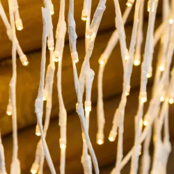 Bílá padající větev vrbová větev WRAB WARM WHITE LED Ø5mm vertikální reflexní, pevné světlo, tvarovatelné na základnu s kovovým jádrem, 24V transformátor, venkovní použití, bílý kabel, rozměry 4m+95cm / 4m+120cm / 4m+200cm
