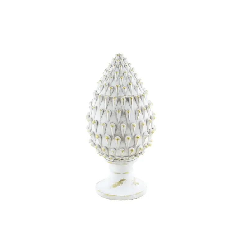 Elegantní bílá pryskyřičná borovicová šiška na podstavci