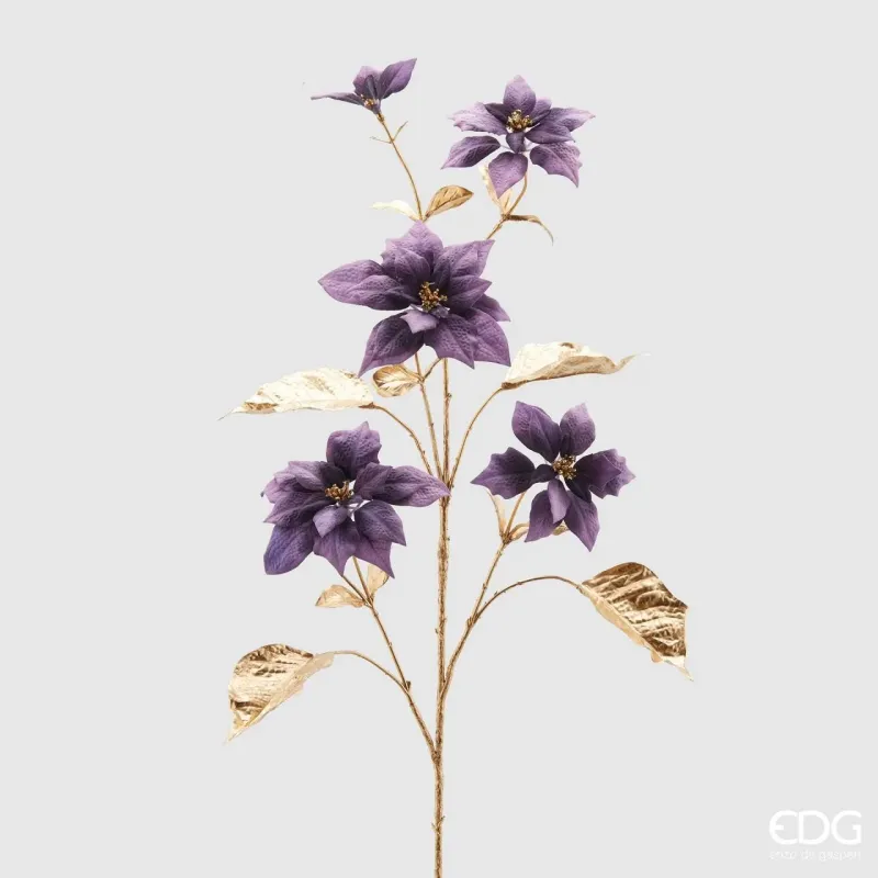 Levandulová větvička vánoční hvězdy se zlatým stonkem, dostupná ve dvou velikostech, je elegantní a sofistikovaná umělá květinová dekorace, která je ideální pro obohacení místností o originální a rafinovaný vánoční nádech. Jemná a moderní levandulová barva se snoubí s brilancí zlatého stonku a vytváří harmonický a zářivý kontrast. Tato větev je ideální pro vánoční květinovou výzdobu, scénické dekorace nebo jako samostatný prvek v dekorativních vázách. Díky kvalitě materiálů zaručuje bezvadný a dlouhotrvající vzhled bez nutnosti údržby.
