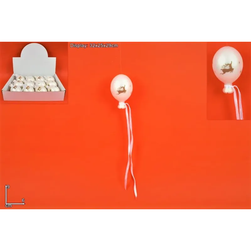 Vánoční dekorace ve tvaru balónku ze skla s barevnou stuhou tón v tónu.