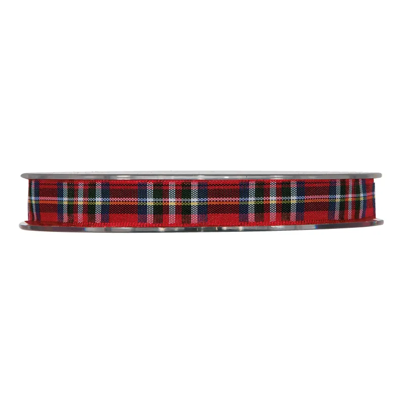 Tartanová stuha je ideální pro přidání klasického a útulného nádechu vánočním dekoracím. Perfektní pro mašle na dárkových obalech, ozdoby na stromeček, girlandy a rustikální aranžmá, připomíná skotský styl a přizpůsobuje se různým kontextům, dodává teplo a tradici každému slavnostnímu prostředí.