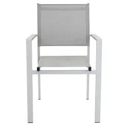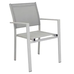 Objevte naše stohovatelné zahradní křeslo cm. 55x58x85h s pohodlnými područkami. Perfektní doplněk do vašeho venkovního prostoru. Toto křeslo je vyrobeno z lehkého a odolného hliníkového rámu, který nabízí odolnost a snadný pohyb. Textilní čalounění zvyšuje pohodlí a odolnost proti povětrnostním vlivům, čímž zajišťuje dlouhou životnost bez ztráty kvality. Díky stohovatelnému designu jej lze snadno uložit, když jej nepoužíváte, což je ideální pro optimalizaci prostoru. Ať už zařizujete malý balkon nebo velkou terasu, toto zahradní křeslo bude praktickou a stylovou volbou. Moderní a elegantní design, vyrobený v rafinovaných a aktuálních odstínech. Bílá struktura: Šedé sedadlo; Holubičí šedá barevná struktura: Hnědé sedadlo; Šedá barevná struktura: Sedák v barvě Dove Grey a barevná struktura v antracitové barvě: Sedák v antracitové barvě. Odpočiňte si a užijte si zahradu s naším křeslem z hliníku a textilu.