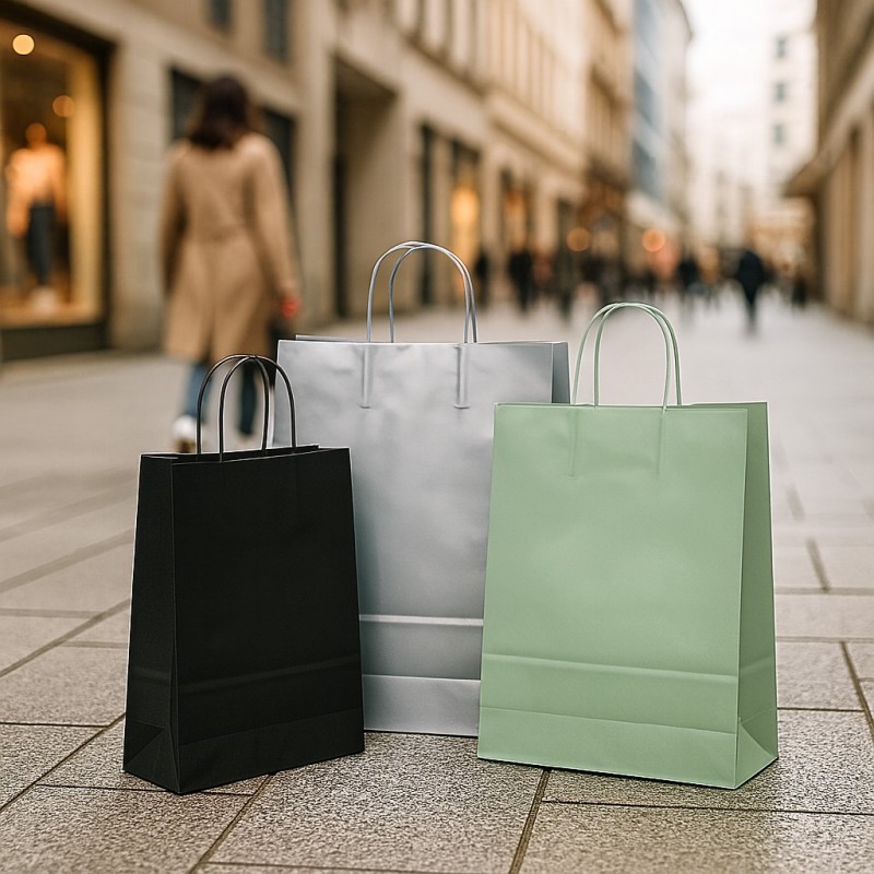 Diese Geschenktüten sind äußerst vielseitig und eignen sich für verschiedene Produktbereiche: von Kleidung über Lederwaren bis hin zu Parfümerie und Geschenken. Das matte Finish und die große Farbvielfalt ermöglichen es Ihnen, die Verpackung mit der visuellen Identität Ihrer Marke abzustimmen.