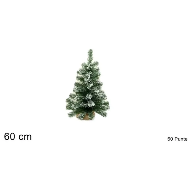 Schneespitzenbaum mit Jutesockel. Dieser Baum mit schneebedeckten Spitzen und Jutesockel verleiht jedem Raum eine rustikale und natürliche Note. Erhältlich in zwei Größen, 45 cm und 60 cm, eignet er sich perfekt für die Dekoration enger Räume wie Regale und Arbeitsplatten und setzt einen weihnachtlichen Akzent, ohne zu viel Platz zu beanspruchen. Durch sein schlichtes und natürliches Design eignet es sich für verschiedene dekorative Bedürfnisse.