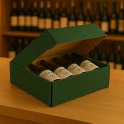 Το κουτί για 4 φιάλες επίπεδη σε ανθεκτικό χαρτόνι συνδυάζει πρακτικότητα και πολυπλοκότητα για μια άψογη παρουσίαση. Κατασκευασμένο από παχύ, ανθεκτικό χαρτόνι, αυτό το κουτί παρέχει εξαιρετική προστασία για τέσσερα μπουκάλια, διατηρώντας τα σταθερά και καλά διαχωρισμένα για την αποφυγή χτυπημάτων και ζημιών κατά τη μεταφορά. Διαθέσιμο σε ποικιλία χρωμάτων, ταιριάζει απόλυτα στις αισθητικές ανάγκες μπαρ, εστιατορίων, wine bars και για όσους θέλουν καλαίσθητες συσκευασίες για συσκευασία δώρου.