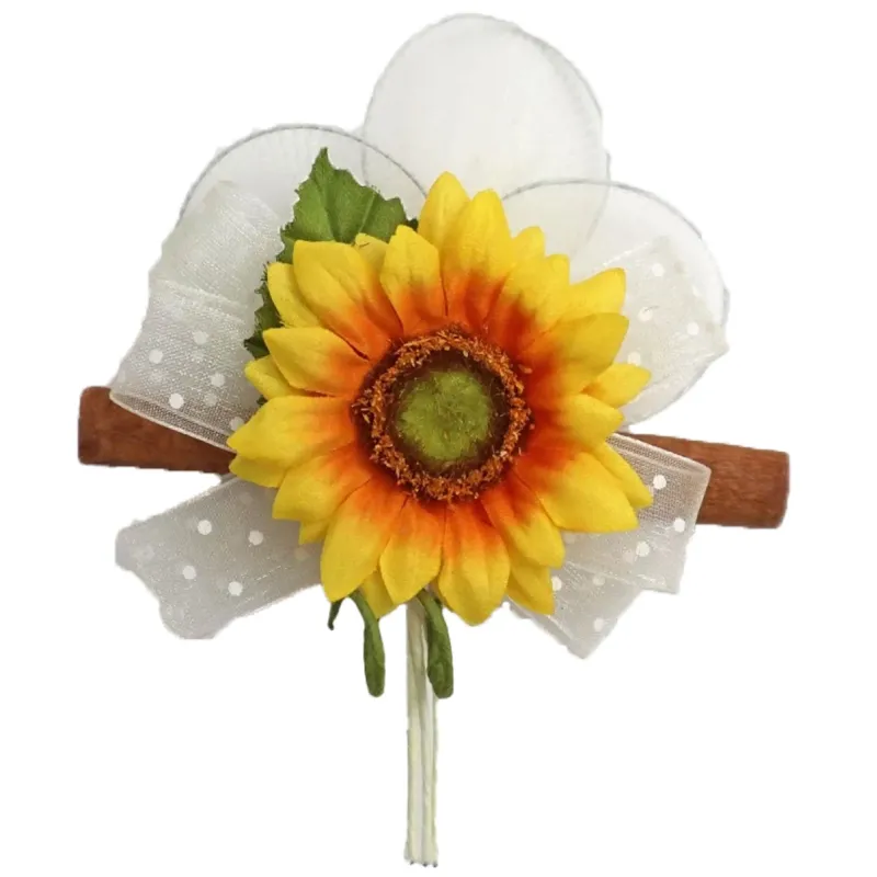 Ηλίανθος διακοσμημένος με ξυλάκι κανέλας, κορδέλα οργάντζα και ρακέτες ζαχαρωμένων αμυγδάλων.
