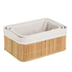 Ορθογώνιο καλάθι από Φυσικό Μπαμπού και εσωτερική φόδρα από 30% Βαμβάκι και 70% Πολυεστερικό ύφασμα.