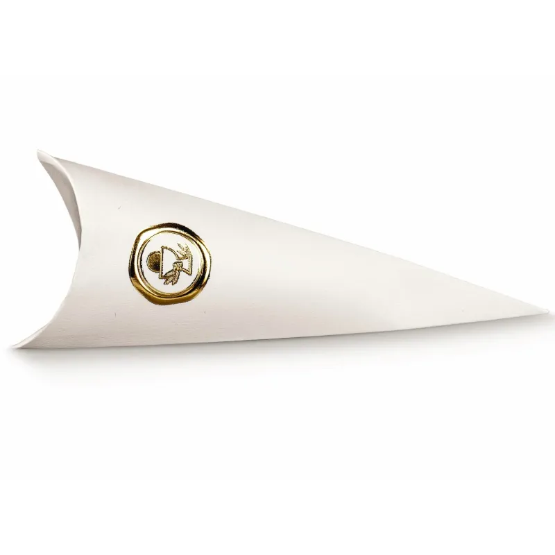 Οι κώνοι ζαχαρωμένων αμυγδάλων αποτελούν μια πρακτική λύση για γρήγορη και εύκολη συσκευασία ζαχαρούχων αμυγδάλων και γλυκών. Η χρυσή καυτή σφραγίδα με το σύμβολο της Κοινωνίας ή της Επιβεβαίωσης θα σας επιτρέψει να δημιουργήσετε γρήγορες, πρακτικές και κομψές μπομπονιέρες έτοιμες για την Τελετή.