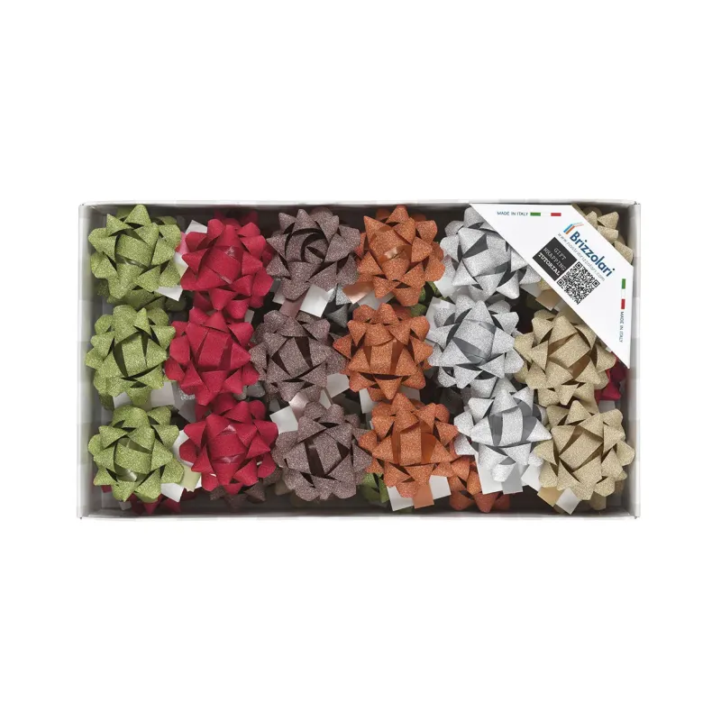 50 διακοσμητικές ροζέτες σε χρυσό, ασημί, κόκκινο ή χρωματιστό μείγμα για να εμπλουτίσετε τα κουτιά δώρου σας με μια πινελιά πρωτοτυπίας.