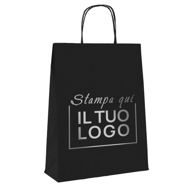 Οι αγοραστές με λαβή μαύρου κορδονιού προσαρμοσμένη στη φλεξογραφία, είναι επαναχρησιμοποιούμενες τσάντες από ανθεκτικό χαρτί gr.90 σχεδιασμένες για τη μεταφορά ελαφρών αντικειμένων όπως ρούχα, δώρα ή διαφημιστικά είδη.