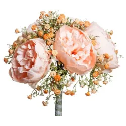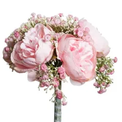 Φέρτε μια πινελιά εκλεπτυσμένης φρεσκάδας στα δωμάτιά σας με το μπουκέτο παιώνιες και γυψόφιλα, μια κομψή σύνθεση λουλουδιών που έχει σχεδιαστεί για να διακοσμήσει τα βάζα σας και να δώσει νέα ζωή στο σπίτι. Οι γενναιόδωρες παιώνιες, με τα απαλά και χνουδωτά πέταλά τους, συνδυάζονται τέλεια με τα μικρά λουλούδια γύψου (που ονομάζονται επίσης "νυφικό πέπλο"), δημιουργώντας ένα ρομαντικό και αρμονικό σύνολο. Διαθέσιμες σε τρία χρώματα – λευκό, ροζ και σομόν – αυτές οι λεπτές αποχρώσεις προσαρμόζονται σε κάθε στυλ επίπλων, από το πιο κλασικό έως το μοντέρνο.