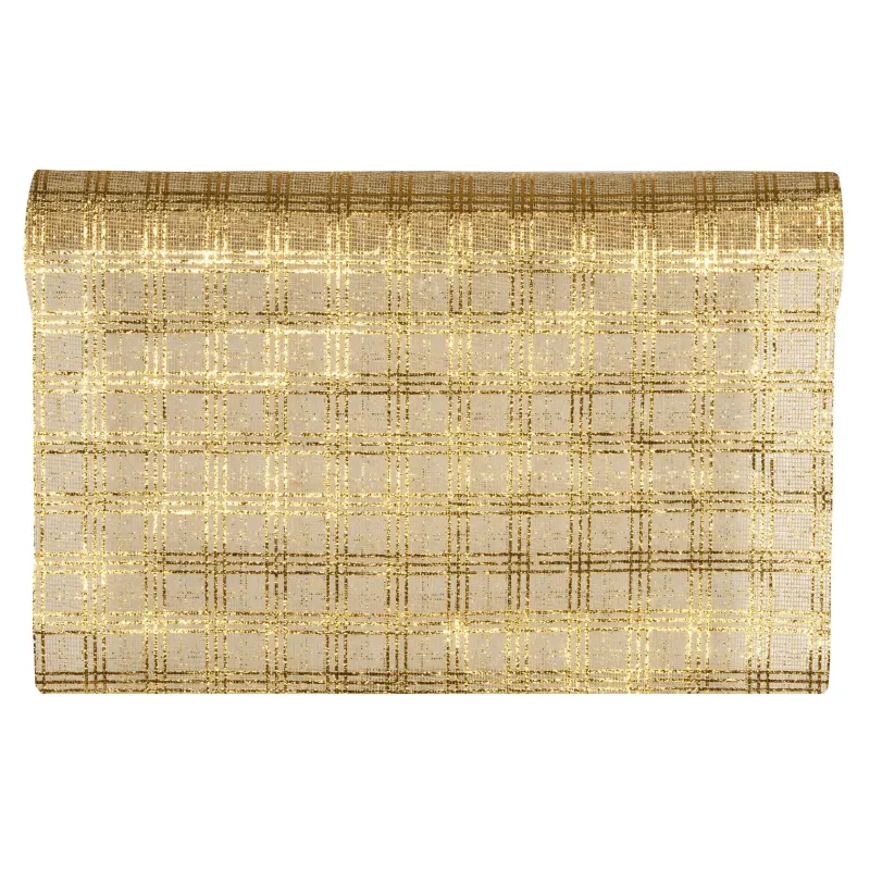 Το Juta Gold Runner είναι ένα κομψό χριστουγεννιάτικο ύφασμα από γιούτα, διακοσμημένο με χρυσές λεπτομέρειες. Έχει διαστάσεις 48 cm x 5 μέτρα, ιδανικό για ρυθμίσεις, φόντο και διακοσμήσεις. Διατίθεται σε τρεις παραλλαγές διακόσμησης: πουά, αστέρια και πούλια, προσφέροντας ευελιξία για διαφορετικές εορταστικές ατμόσφαιρες.