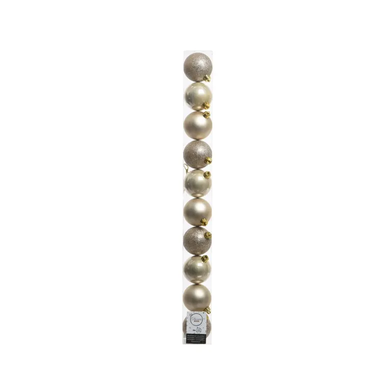 Χριστουγεννιάτικα στολίδια εμπλουτισμένα με γκλίτερ, διαμέτρου 6 εκατοστών και διαθέσιμα σε μεγάλη και μοντέρνα γκάμα χρωμάτων, για να ικανοποιήσουν παραδοσιακά αλλά και μοντέρνα και εκλεπτυσμένα σκηνικά. Σωλήνας 10 σφαιρών.