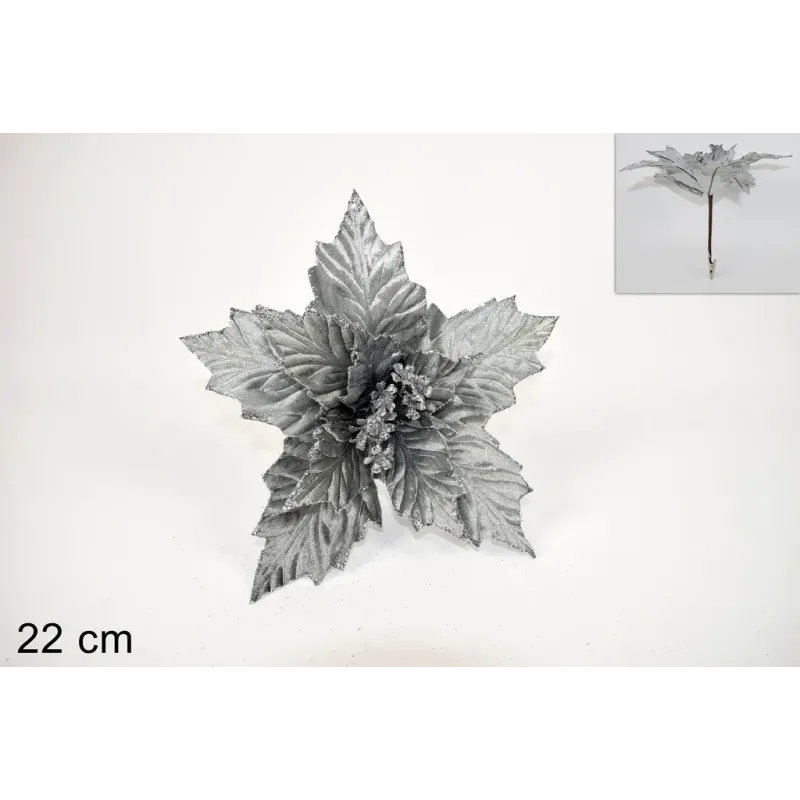 Elegant 22 cm velvet poinsettia equipped with tweezers and available in 5 different colors, ideal for giving a colorful touch to your tree or to bring the Christmas atmosphere wherever you want.