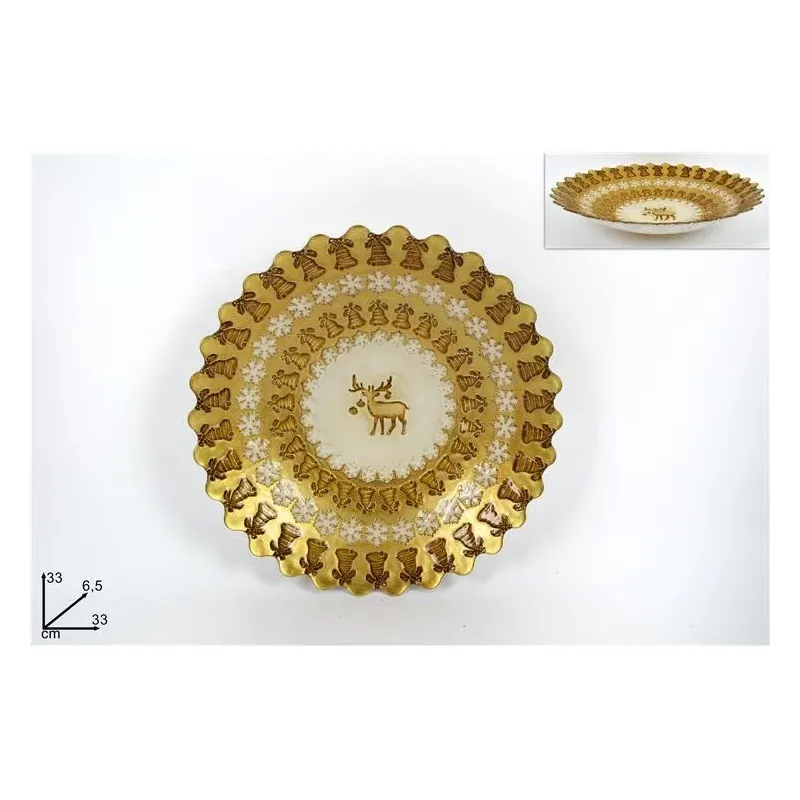 Centro de mesa navideño en cristal rojo y dorado de diámetro. 33