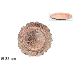 Dispuesta como base para platos principales, la placa inferior no solo enriquece visualmente la mesa, sino que también crea un elegante contraste de color, gracias a su brillo en variantes doradas, plateadas o cobrizas. Cada color se puede elegir para complementar o contrastar las decoraciones y la paleta de colores del resto del equipo, para un efecto armonioso y coordinado.