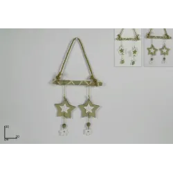 Decoración colgante realizada en madera natural y pintada de blanco.