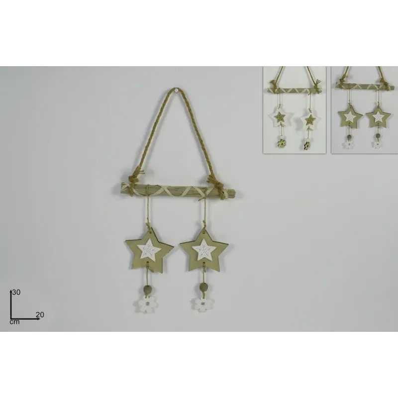 Decoración colgante realizada en madera natural y pintada de blanco.