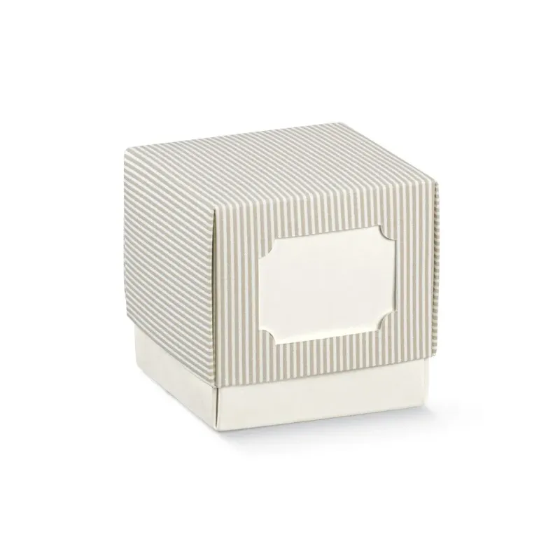 Pack de 10 Cajas Cuadradas en Cartulina Rayada modelo Fleur. ¡Creado para poder preparar un bricolaje de almendras azucaradas en unos pocos pasos!