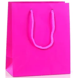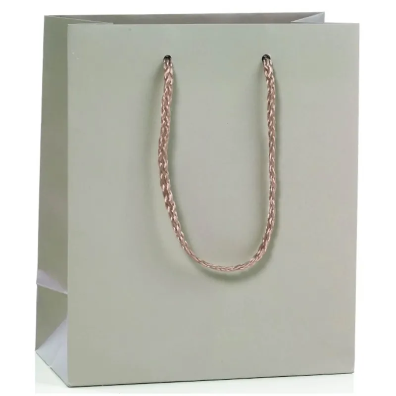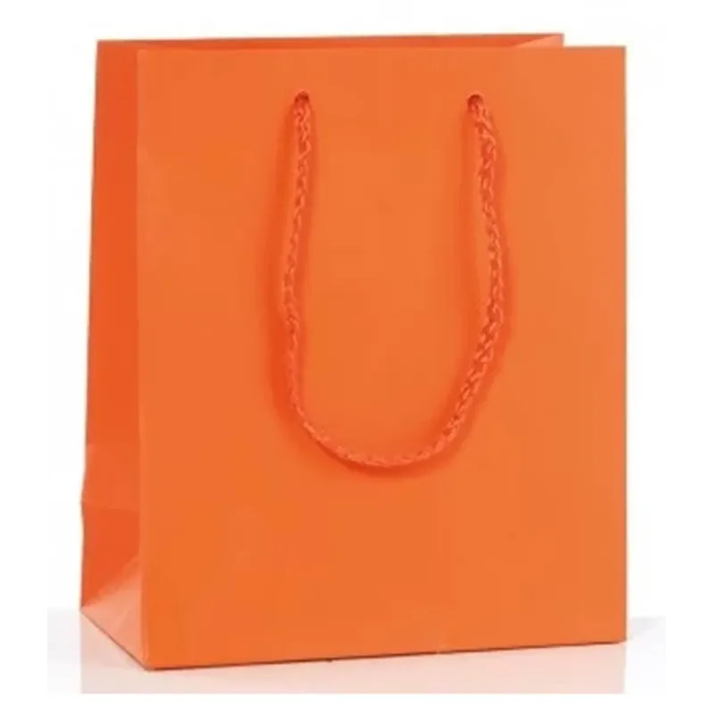 Cuando desee entregar un artículo precioso con un embalaje impactante, elija esta bolsa de compras de lujo: papel rígido recubierto de plástico con un acabado liso que resiste los arañazos y la humedad, bordes enrollados que conservan su forma, fondo de caja interior reforzado y cordones de algodón anudados que ofrecen un agarre suave y seguro. Disponible en varios colores elegantes, se presenta en prácticos packs de doce piezas, ideales para boutiques, showrooms y ceremonias donde el detalle marca la diferencia.