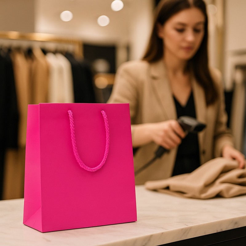 Cuando desee entregar un artículo precioso con un embalaje impactante, elija esta bolsa de compras de lujo: papel rígido recubierto de plástico con un acabado liso que resiste los arañazos y la humedad, bordes enrollados que conservan su forma, fondo de caja interior reforzado y cordones de algodón anudados que ofrecen un agarre suave y seguro. Disponible en varios colores elegantes, se presenta en prácticos packs de doce piezas, ideales para boutiques, showrooms y ceremonias donde el detalle marca la diferencia.