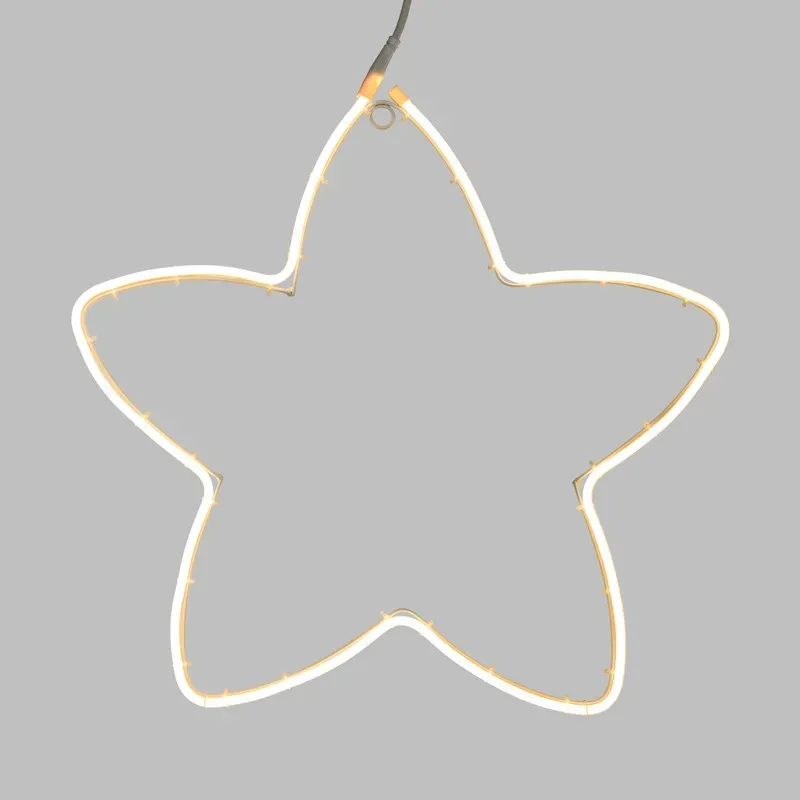 Estrella de neón de doble cara Ø30cm con 120 LEDs CLASSIC (1mt), Ø58cm con 120 LEDs CLASSIC (2mt), Comet Star 100xH45cm con 360 120 LEDs CLASSIC (3mt), Diseño redondo con formas redondeadas, Marco de metal pintado en blanco, Luz fija, 230V, Uso en exteriores, Cable blanco