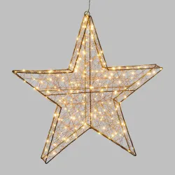 Estrella 3D de Metal Marrón Cobrizo con MicroLed BLANCO CÁLIDO ø1.5 mm Reflex, Cable de Metal de Cobre MicroLED, marco de metal pintado Marrón, Juego de luces automático FlashLED Diamond. Cable de alimentación transparente de 5 m, gancho para colgar incluido.
