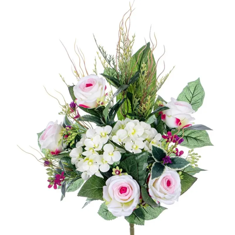 El Ramo de Rosas y Hortensias, disponible en varios colores, es una elegante y sofisticada decoración floral artificial, perfecta para enriquecer las habitaciones con un toque de refinamiento y color. Compuesto por rosas y hortensias realistas, con detalles bien pensados y una armoniosa combinación de tonos, este ramo se adapta a una amplia gama de estilos decorativos.