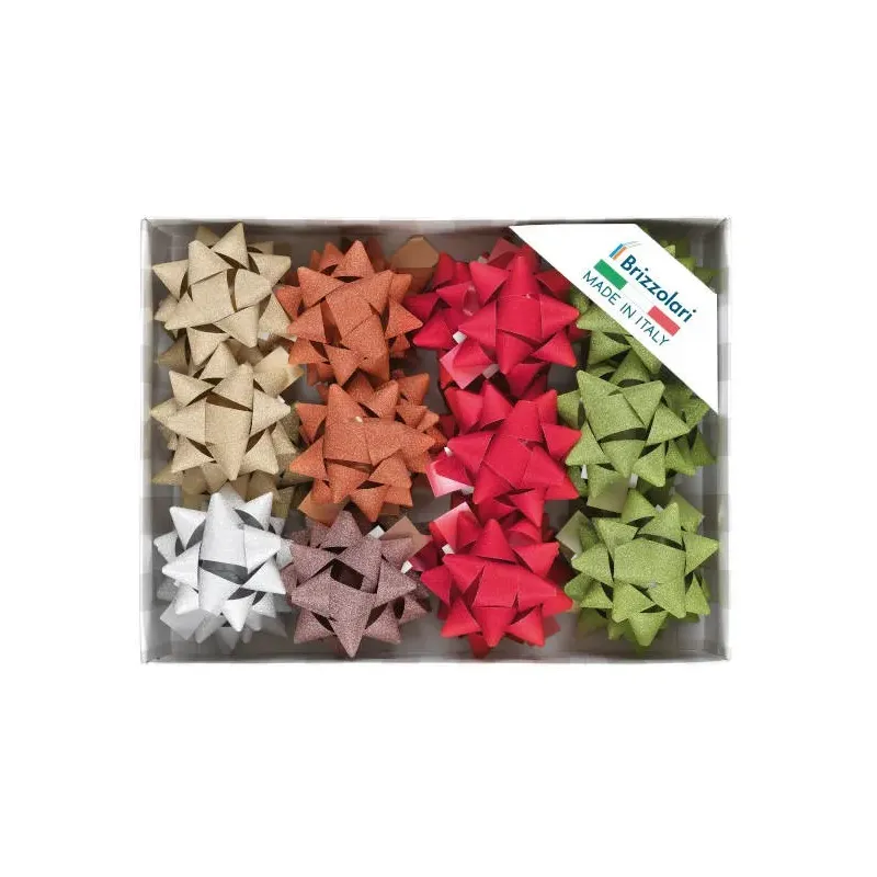 36 rosetas de colores surtidos o lisos de polipropileno brillante, útiles para embellecer tus cajas de regalo.
