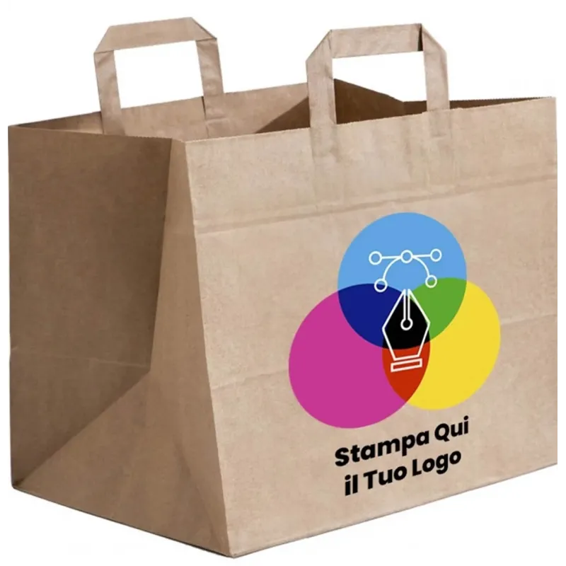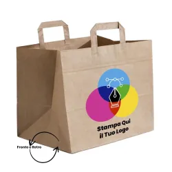 No olvides guardar tu personalización para poder llenar tu carritoBolso de compras de papel Havana reciclado con asa plana y fuelle lateral Personalizzati con logotipo impreso en 1 lado o 2 lados. Entrega en 7 días laborables.