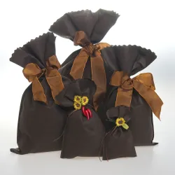 Abres el paquete y encuentras veinticinco sobres doblados en un bloque compacto: sin solapas para sellar ni pegamentos para desechar. El borde superior es de corte sin rematar, limpio y listo para interpretar el estilo que prefieras: todo lo que necesitas es una ronda de rafia para un look campestre, una cinta de raso para un efecto de lujo, un simple pliegue detenido por una cinta de marca para una venta rápida en el mostrador. El tejido no tejido, fabricado con fibras de polipropileno prensadas en caliente, combina suavidad y resistencia.