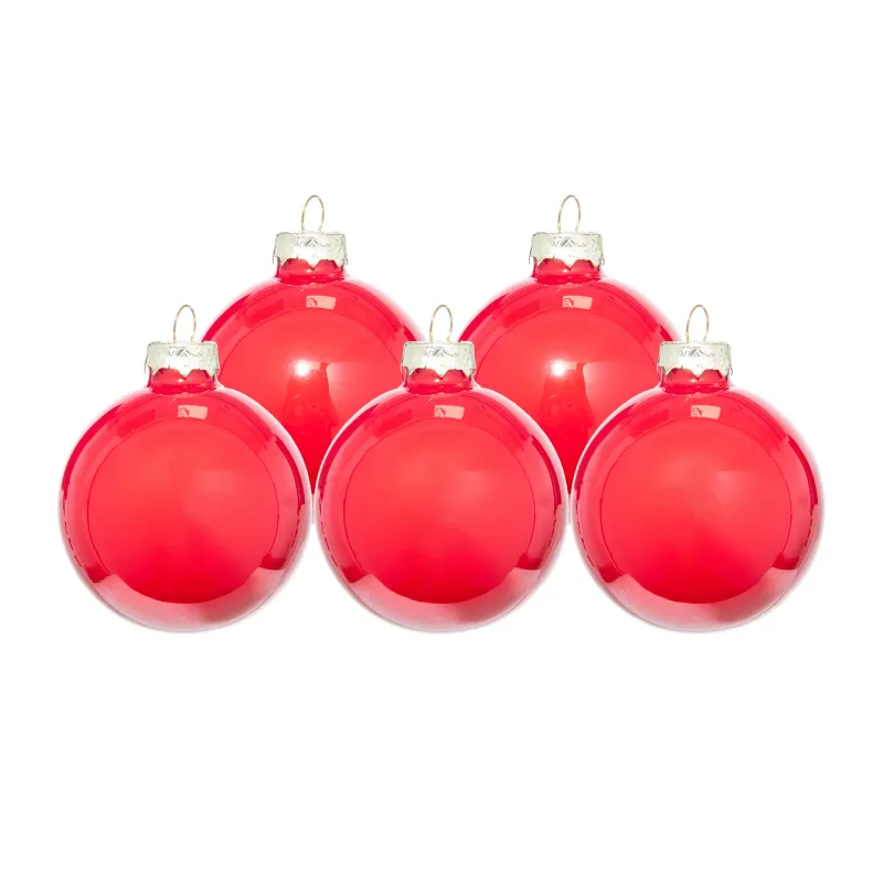 Boules de Noël en verre, d’un diamètre de 60 mm et emballées dans des boîtes de 36 pièces.