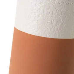 Détail du vase en céramique et terre cuite. La céramique blanche a un effet poreux pour donner de l’air marin, pour rappeler les éponges, le souffle et la nature. La partie en terre cuite, quant à elle, le contraste en lui redonnant le style classique et en lui donnant la chaleur de la terre.