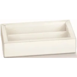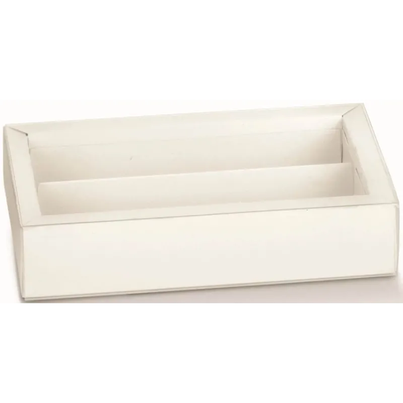 A fehér kartonból készült látható cukorkás dobozok tökéletesek a cukrozott mandula csomagolására, íz vagy szín szerint felosztva és felváltva cukorkával, csokoládéval vagy pralinéval. Használhatók kóstolókhoz a cukrozott mandula asztalon, a partikon vagy a cukrászati termékek csomagolására. A karton dombornyomása kiváló minőséget kölcsönöz ezeknek a dobozoknak, így a legelegánsabb esküvői ajándékokra is alkalmasak. A semleges szín alkalmazkodik bármilyen más típusú színhez és kiegészítő dekorációhoz.
