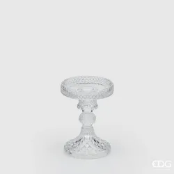 Különleges és kifinomult gyertyatartó átlátszó üvegből.