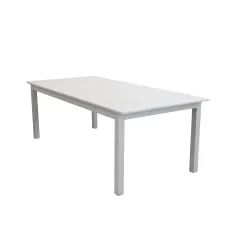 Fedezze fel kültéri kerti asztalainkat rácsos alumíniumból, kihúzható és két különböző méretben kapható: cm. 150/210x790x75 és 220/280x100x75 és négy lenyűgöző színben választhat a szürke, galambszürke, fehér és antracit színek közül. Kiváló minőségű alumíniumból készültek, ezek a táblázatok ötvözik a könnyűséget és az erőt, biztosítva a légköri anyagokkal szembeni ellenállást és a könnyű karbantartást. A rácsos kialakítás eleganciát kölcsönöz a kültéri térnek, míg a bővíthető funkció rugalmasságot kínál a vendéglátás igényeinek megfelelően. Akár kompaktabb asztalra van szüksége erkélyre, akár nagyobb megoldásra tágas teraszra, megtalálja a tökéletes méretet a helyéhez. A választható színek széles választékával az asztalt a kert vagy terasz esztétikájához igazíthatja. Válassza kihúzható rácsos alumínium kültéri kerti asztalunkat, és készüljön fel arra, hogy felejthetetlen szabadtéri pillanatokat teremtsen családjával és barátaival, időtlen eleganciába csomagolva.