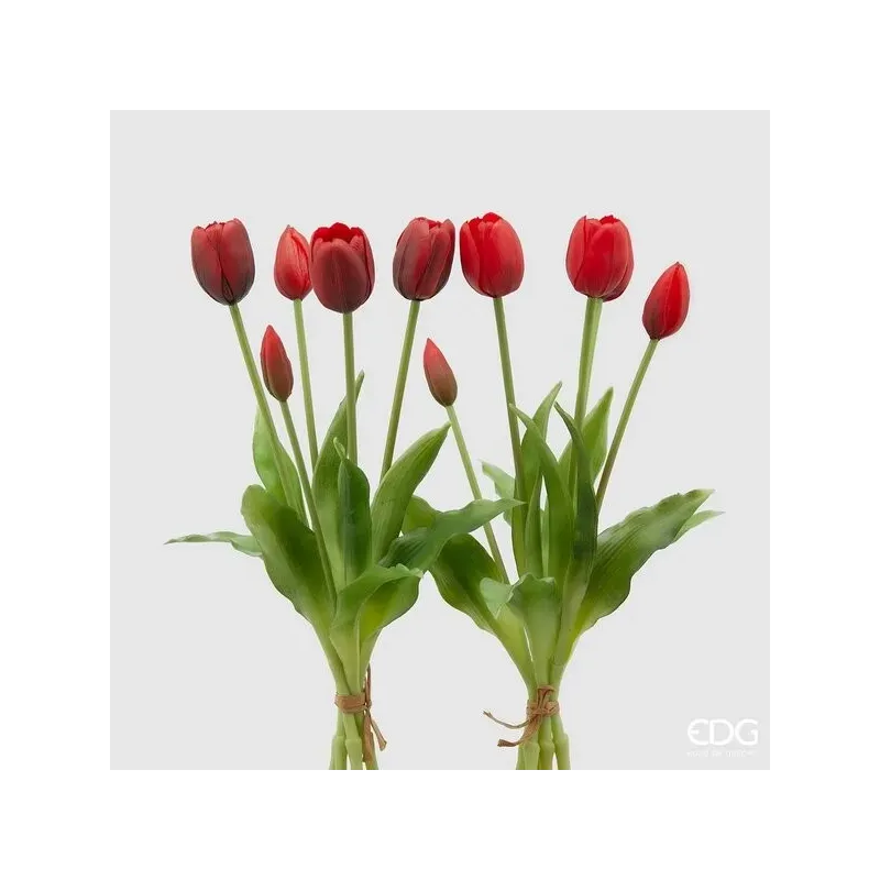 Az EDG 5 tulipánból álló, alto 40 cm hosszú és különböző színekben kapható csokor elegáns és sokoldalú művirágos dekoráció, amely tökéletes bármilyen környezet gazdagítására egy kis kifinomultsággal és tavaszi frissességgel. A részletekre nagy figyelmet fordítva készült tulipánok hűen reprodukálják a virágok természetes megjelenését, biztosítva a reális és harmonikus hatást.