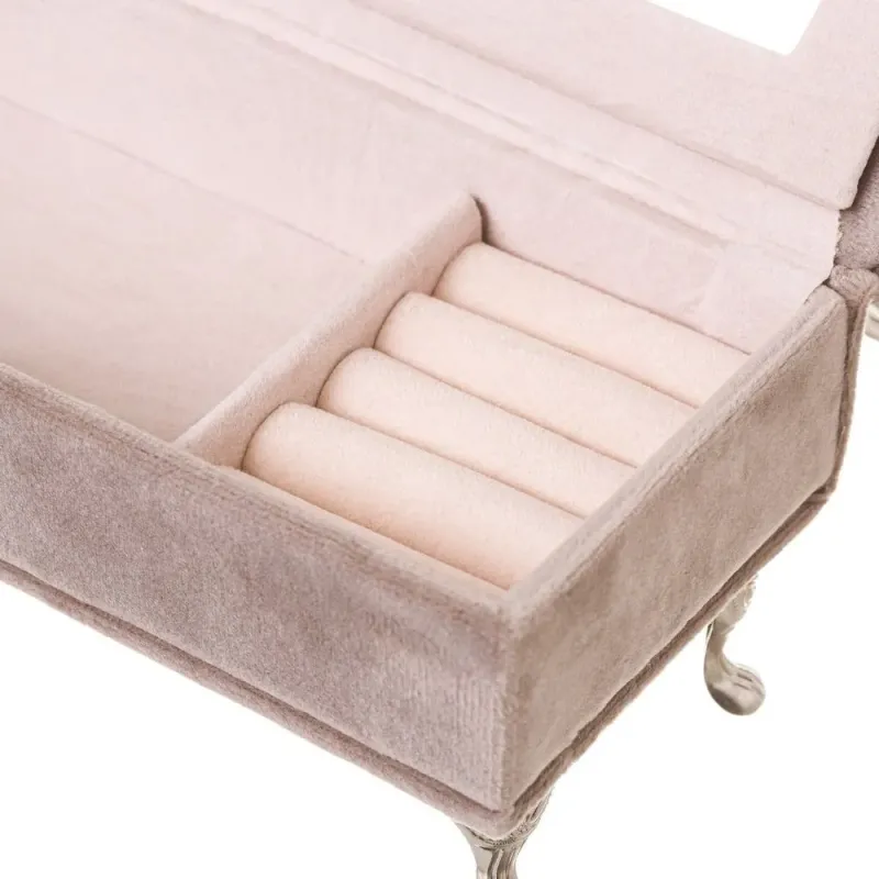 Portagioielli a forma di poltrona realizzata in velluto. Rifinita nei minimi dettagli questo soprammobile dona ricchezza e preziosità senza essere aperto.