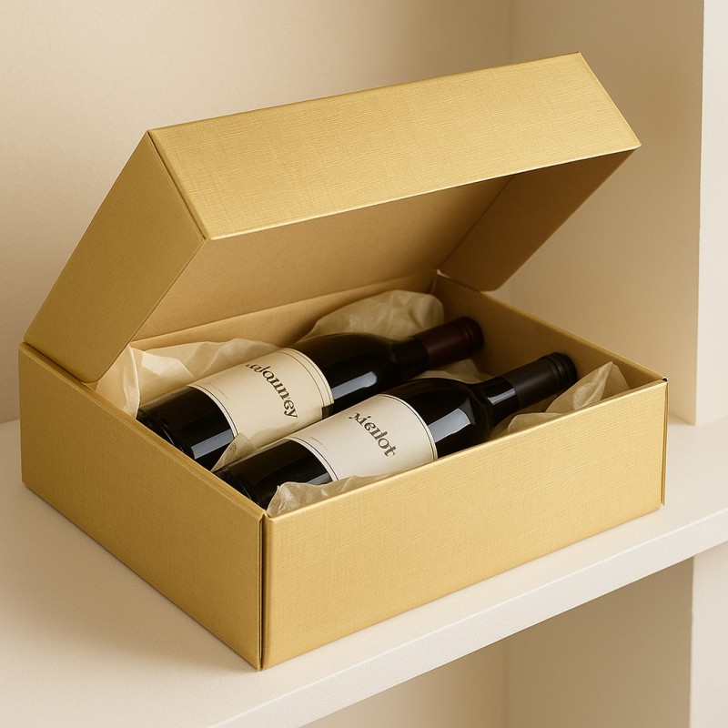 La Scatola per 2 Bottiglie Stese in Cartoncino Resistente è una soluzione elegante e funzionale per trasportare e presentare due bottiglie in sicurezza. Realizzata in cartoncino robusto, questa scatola assicura stabilità e protezione, mantenendo le bottiglie ben posizionate e riducendo il rischio di danni. Disponibile in vari colori, si adatta perfettamente allo stile di bar, ristoranti ed enoteche, risultando ideale anche per confezioni regalo in occasioni speciali. Con un design raffinato e una chiusura sicura, la scatola valorizza il contenuto, rendendola perfetta per bottiglie di vino, liquori o olio. Una scelta versatile e sostenibile per chi cerca un packaging di qualità.