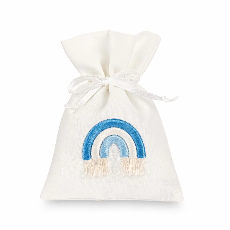 I 12 sacchetti con arcobaleno cm 10x14 – in tre colori sono una proposta allegra e tenera per confezionare con originalità confetti, bomboniere o piccoli omaggi in occasione di nascite, battesimi e baby shower. Realizzati in tessuto morbido e colorato, sono decorati con un applicativo a forma di arcobaleno che dona un tocco gioioso e simbolico a ogni confezione. Ogni sacchetto è dotato di nastrino in raso coordinato per una chiusura pratica e decorativa.