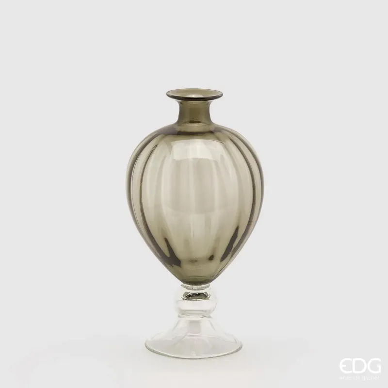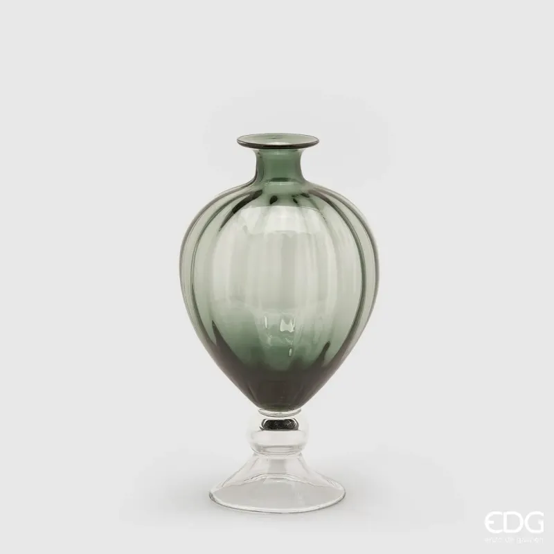 Glazen vaas met steunvoet, met een zeer sterke verwijzing naar de Art Nouveau van eind 800 en begin 900.