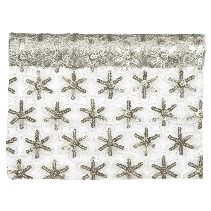 De Little Stars Runner cm 25 x 25 mt - Goud of Zilver is een verfijnde decoratieve kerststof, perfect voor het verrijken van tafels, evenementenarrangementen en feestelijke decoraties met een heldere en sprankelende toets. Het is gemaakt van hoogwaardig materiaal en heeft een delicaat weefsel met gouden of zilveren sterren, wat een elegant en verfijnd effect geeft. Dankzij de breedte van 25 cm en de lengte van 25 meter is hij ideaal voor het maken van verfijnde centerpieces, decoraties voor Kerstmis, bruiloften, galadiners en glamoureuze feesten.