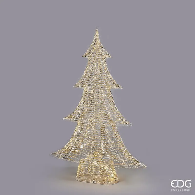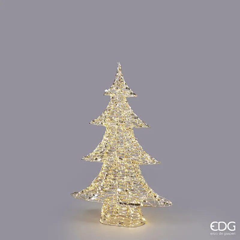Maak uw kerst uniek met onze gouden LED strepen kerstboom, verkrijgbaar in drie verschillende maten: Hoogte 58 cm met 720 micro LED's, Hoogte 98 cm met 1440 micro LED's en Hoogte 122 cm met 1800 micro LED's. Uitgerust met een praktische 6H AAN / 18H OFF timer, 5 m lange kabel 6W, biedt deze decoratie programmeerbare verlichting om de perfecte sfeer te creëren tijdens de feestdagen. Met IP44-waterdichtheid is het ook geschikt voor gebruik buitenshuis, bestand tegen weersinvloeden, het wordt nog steeds aanbevolen voor gebruik onder pergola's en omgevingen beschut tegen directe regen. Kies het formaat dat het beste bij uw ruimte past en maak u klaar om uw kerst te verlichten met een prachtige gouden gloed! Gesigneerd EDG door Enzo De Gasperi: een made in Italy bedrijfsleider op het gebied van decoratie en woondecoratie.
