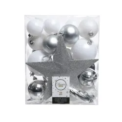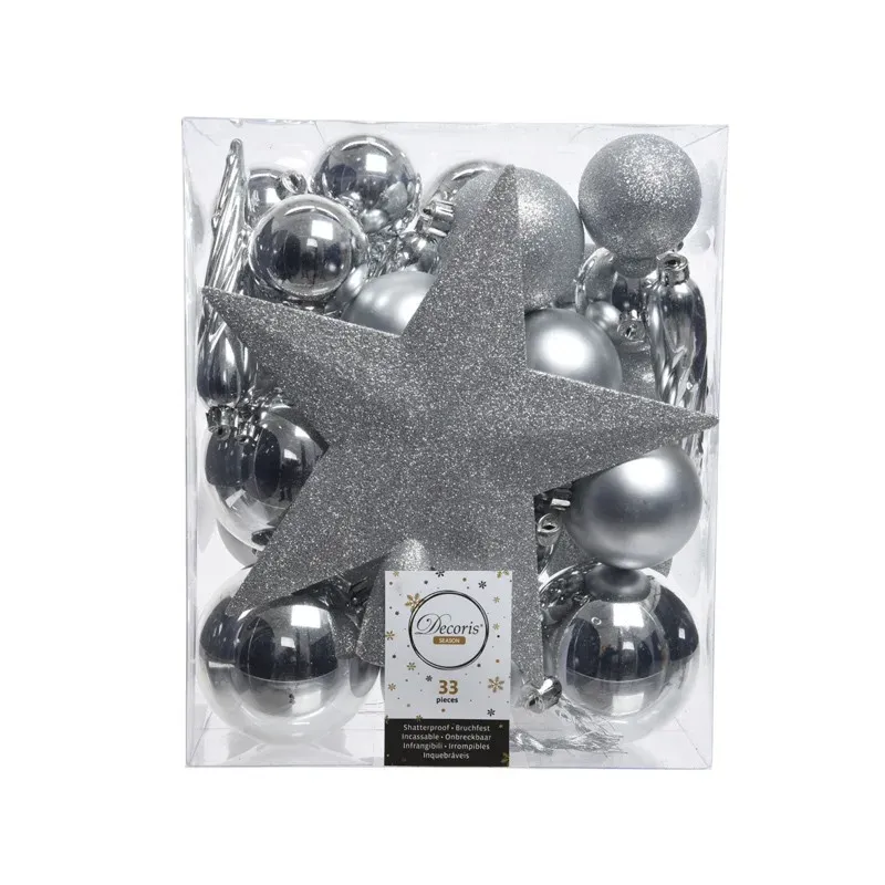 Onbreekbare ballen mm. 40 en 80. 33 stuks met neus in diverse kleuren. Deze ballen hebben een bijzondere glans. De verpakking is erg handig en zuinig. Als je een paar bijpassende kleuren kiest, heb je genoeg ballen om een boom van 210 cm te versieren.