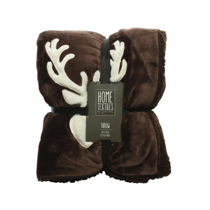 Plaid met hert verkrijgbaar in de kleuren: Bruin en Wit.
