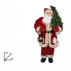 Prachtige en imposante kerstman met boom in zijn armen.