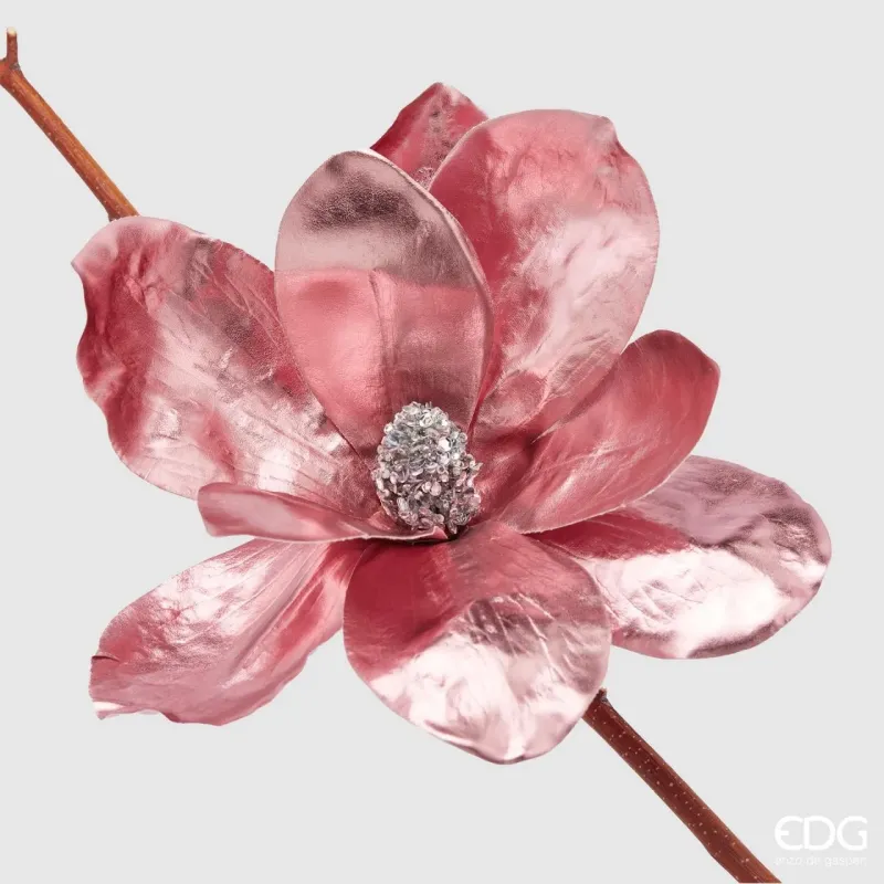 Magnolia met clip met metaaleffect, kan worden gebruikt voor kerstcomposities, slingers of kerstbomen. Deze kunstbloem in de vorm van een magnoliakop met een metaaleffect is een elegante en verfijnde toevoeging aan kerstversieringen. Met een combinatie van ultraheldere kleuren zoals: goud, rood en antiek roze, legt het de essentie van de feestdagen vast met een unieke en verfijnde stijl. Met zijn combinatie van hoogwaardige materialen, levendige kleuren en charmante ontwerpen is deze kunstbloem de perfecte aanvulling op vakantiedecoraties en brengt hij deze feestdagen een vleugje elegantie en feest in huis. Gemaakt door EDG: opgericht door de ondernemer Enzo De Gasperi, werd het geboren in het begin van de jaren zeventig met als doel de oude kunst van decoratie uit te breiden en uit te drukken, gericht op het verfraaien van elke omgeving op een unieke manier, het creëren van exclusieve suggesties. De kerstcollectie versiert uw kerst op elegante wijze, creëert een unieke en verfijnde stijl en brengt zeldzame emoties tot leven. Alle EDG-collecties drukken finesse en stijl uit door middel van objecten en inrichtingsaccessoires met een exclusief ontwerp. Vazen, bloemen, lijsten, lampen, decoraties en decoraties om de wereld te verbazen met een onmiskenbare stijl. Vandaag de dag staat Enzo De Gasperi synoniem voor: Elegantie, Moderniteit en Kwaliteit.